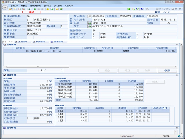 最新の宛名情報、固定資産情報を参照します。 また、調定以降については収納管理システムで管理されます。
