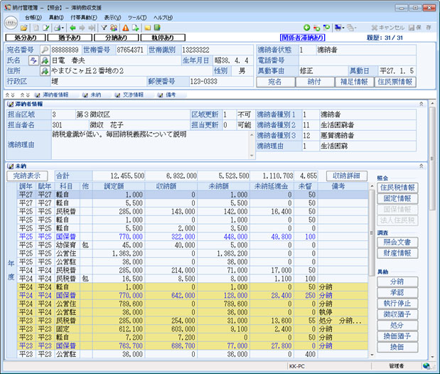 - 収納管理システムの徴収簿で管理している最新の収納状況