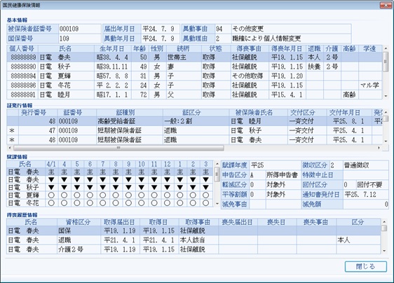 - 国民健康保険システムで管理している資格、資格履歴、世帯情報、証発行履歴、賦課世帯情報